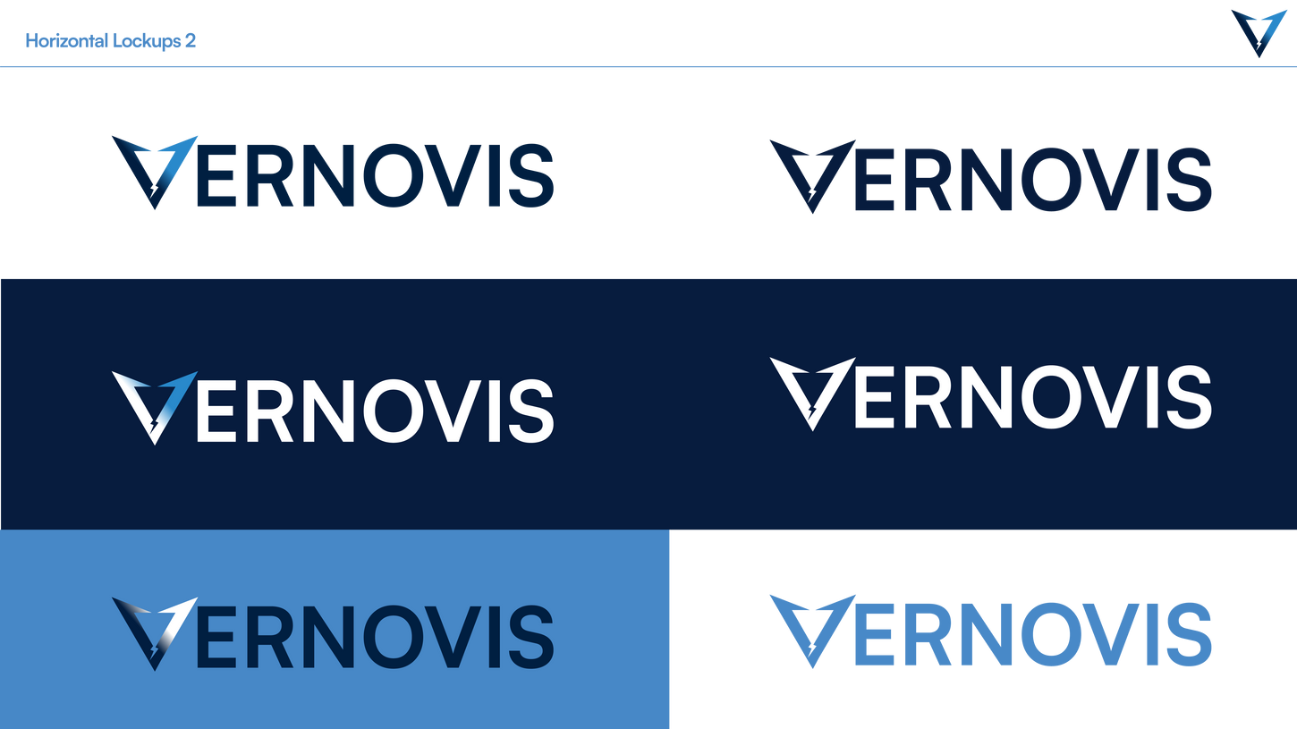 To help Vernovis stand apart in a crowded tech-talent market, we modernized its identity with a sharp, forward-tilting “V” mark and a crisp slate-and-teal palette. The new system scales from slide decks to stationery, giving the team a cohesive, solutions-first look that shortens sales conversations and builds instant credibility.